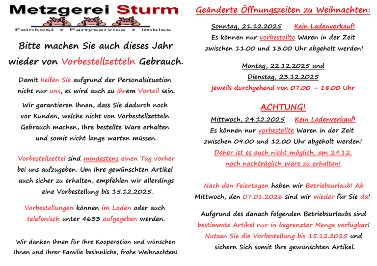 Hier finden Sie zukünftig aktuelle Informationen und Angebote rund um unsere Metzgerei!