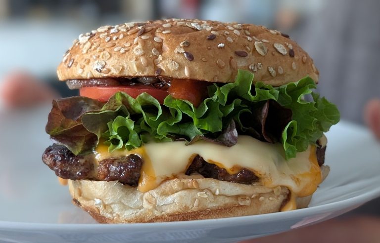 Jetzt noch mal mit unseren leckeren hausgemachten Max-Burger Patties (TK) eindecken.