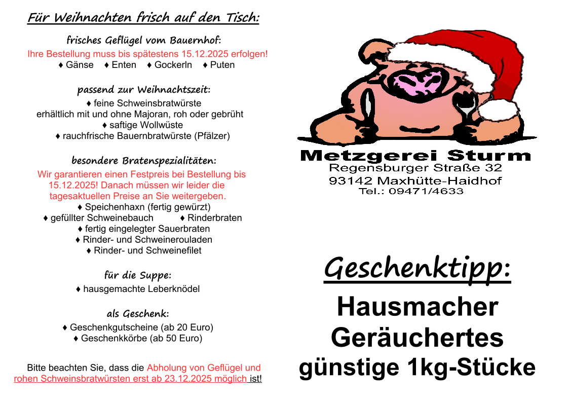 Auch dieses Jahr bieten wir Ihnen für Weihnachten wieder frisches Geflügel vom Bauernhof an.