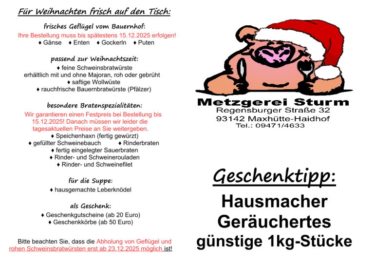 Auch dieses Jahr bieten wir Ihnen für Weihnachten wieder frisches Geflügel vom Bauernhof an.